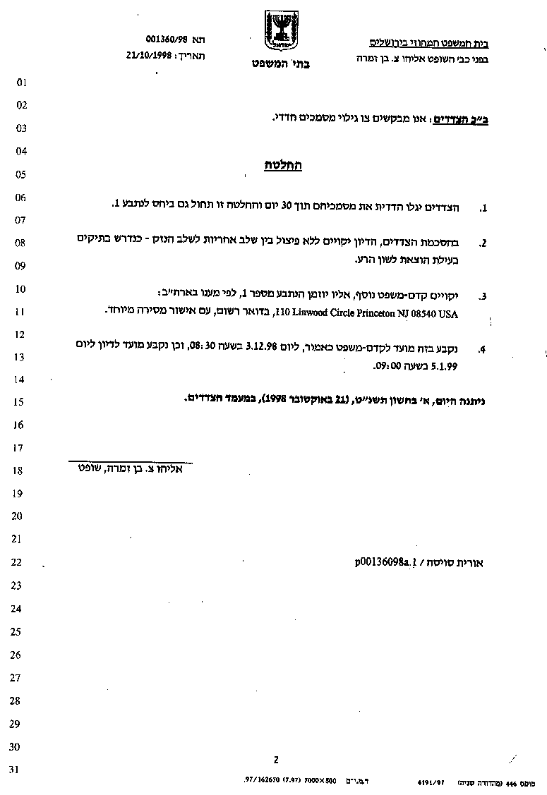 Ha`aretz: RAFAEL is ordered by Supreme Court, in the matter of Dr. Arnon Bone